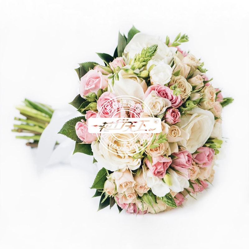 描述: 粉玫瑰、香槟玫瑰、白玫瑰、绿叶组成。